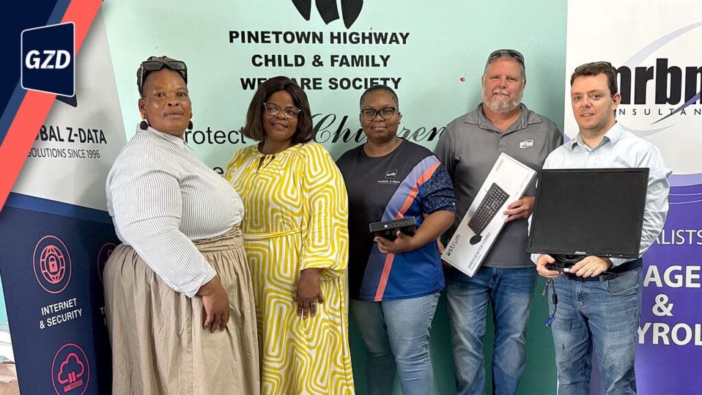 Global Z‑Data donates fully equipped desktops to the Pinetown‑Highway Child & Family Welfare Society, helping social workers save time and better support vulnerable children.